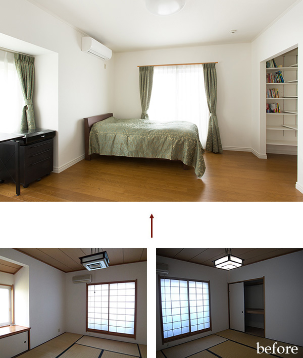 - 従来の和室は、ゲスト宿泊のための和洋折衷の空間に。