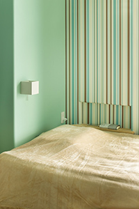 1階の浴室だった場所を奥様の寝室に。 洗面とトイレが隣接しているので、快適に過ごすことができる。